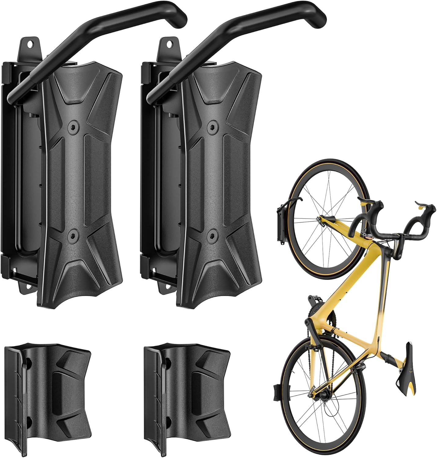 • Diamond-Grip Anti-Slip Design : The core of this bike hanger features an exclusive diamond-patterned tread on both the rack and tire stop. This textured surface delivers a far firmer grip than smooth alternatives, keeping your bike securely in place while protecting it from scratches and accidental slips. It’s the perfect balance of functionality and sleek design.